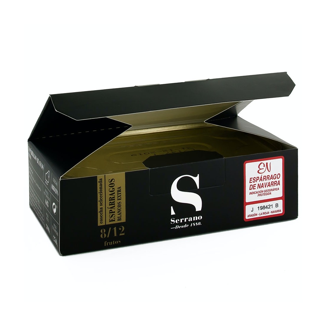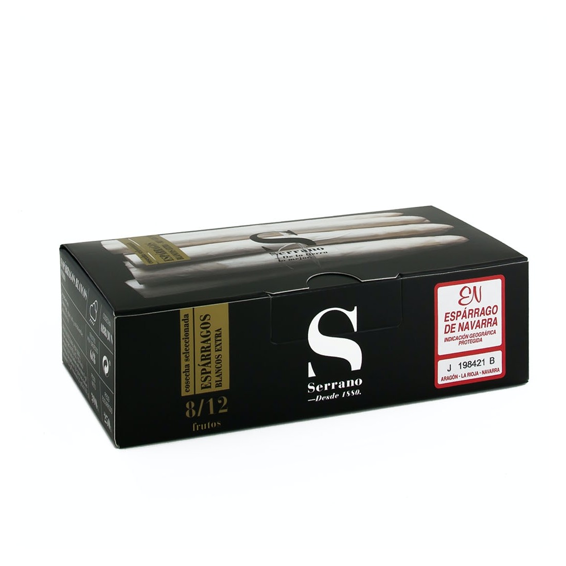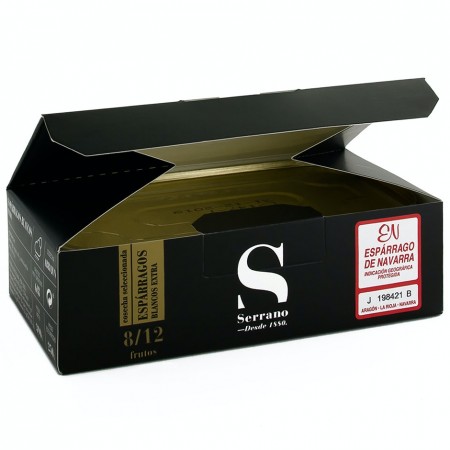 El espárrago Serrano Selección pelado a mano destaca por su coloración blanca, textura suave, nula fibrosidad y delicado sabor. Siempre con la garantía de calidad de la indicación geográfica protegida Espárrago de Navarra.