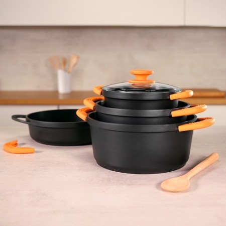Lote de cazuelas de 28 cm alta y baja con tapa